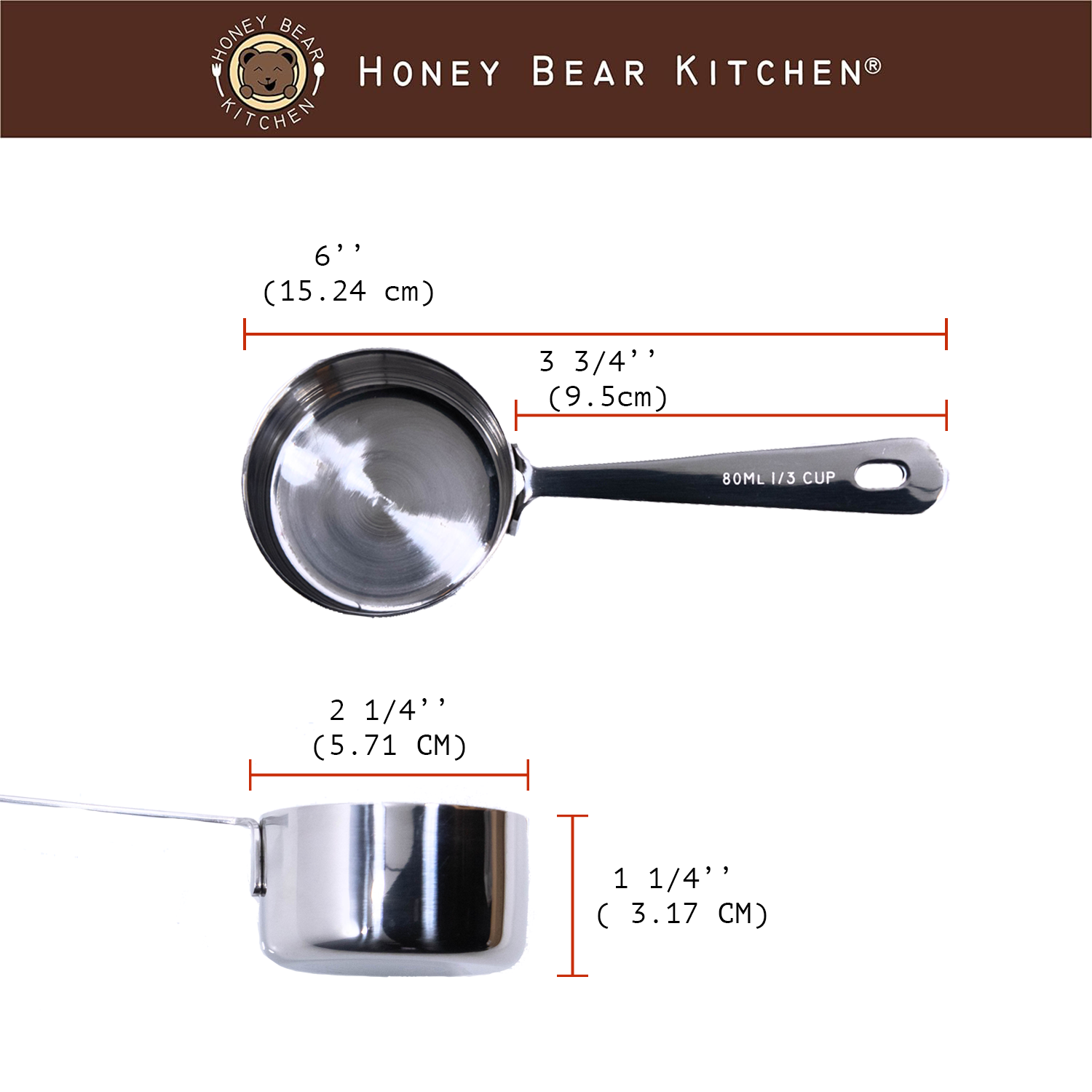 - Set of 2: 1/3 Cup Measuring Cups ( 80 ml)
